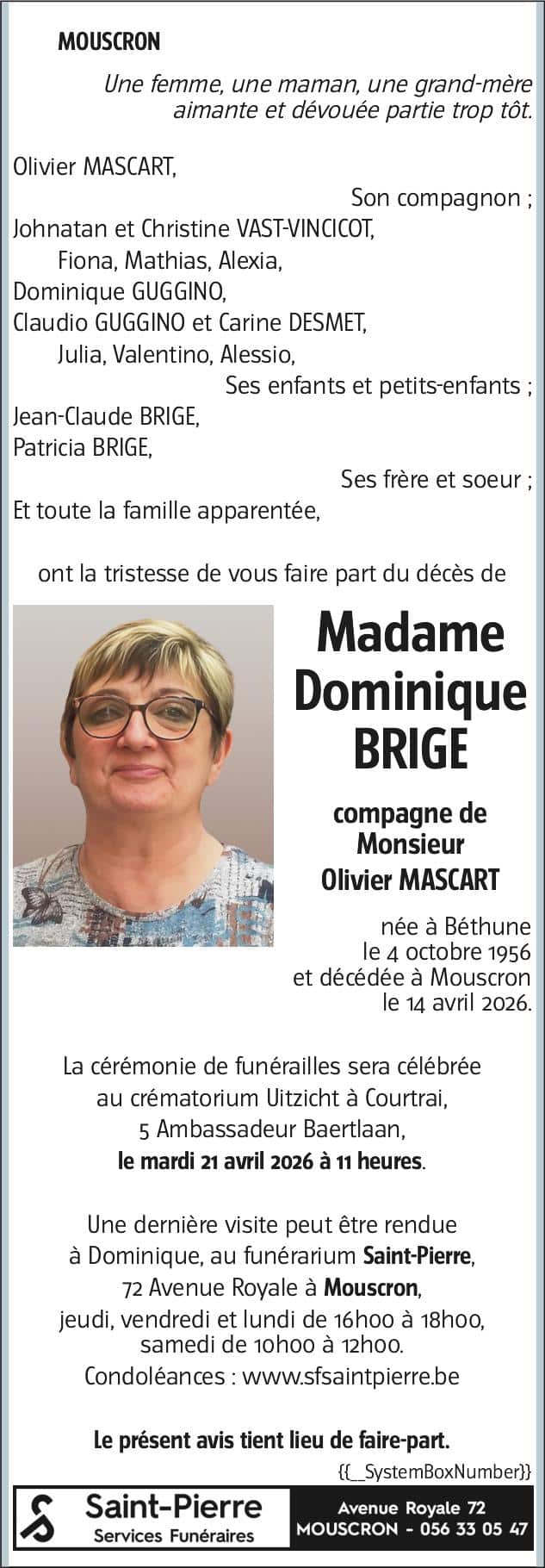 Crématorium Uitzicht à Courtrai, le mardi 21 avril 2026 à 11 heures.